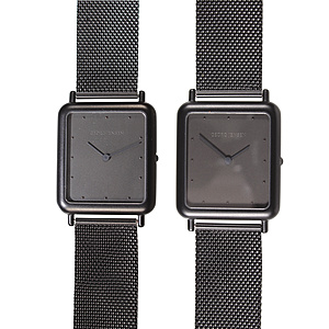 lot: 2 men's-wristwatches, JENSEN, steel (black anodized), quartz, dark grey clockface, dot index, snap off case back, case c. 27.1 x 30.5 mm, signed GEORG JENSEN DENMARK, THORUP & BONDERUP, original watchstrap, length = c. 17.5 and 18.5 cm, unworn, watches are running!