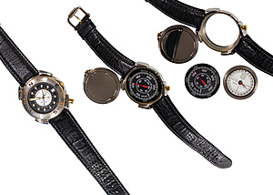 men's wristwatch, REVUE THOMMEN, ALTIMARK late 1990s, self-winding, stainless steel, black white clock-face, dot index, index, Arabic numerals, date on 3 o'clock, sapphire glass, adjusting ring, screw back, diameter = 40,0 mm (without crown), Ref. 5811002, optional usable with compass or altimeter (both are enclosed!), original leather watchstrap with folding clasp, (was for a long time decorated) unworn !