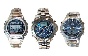 3 Herren-Armbanduhren, analog u. digial, 2 x CASIO u. 1 x TEMPIC, Stahlband mit Faltschließe, ungeprüft !