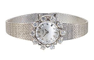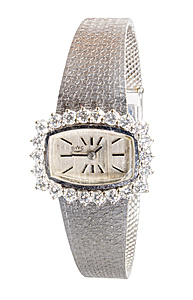 ladies watch, ORAFA, white gold 585/000, 10 brilliants c. 1.35 ct tw/w-vsi/si, stick index, manual winding, diameter = 21.5 mm, length = 17 cm, watch is running, very good general condition, total 26.5 g