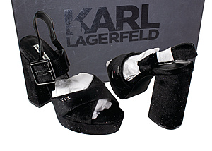 Damenschuh, KARL LAGERFELD, Sandale mit Absatz, feiner Glitzer im Stoff, Größe: 39, ungetragen, mit Originalkarton !