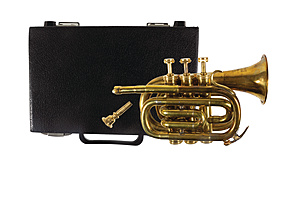 pocket trumpet (nautical trumpet), BESSOBS & COLONDON W.C., handmade, length = 27.0 cm, original box