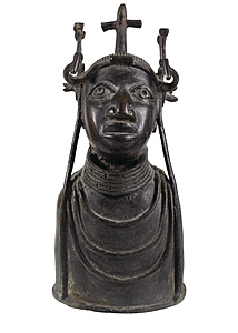 Königskopf, BENIN 20.Jhd., Bronzeguß, ausdrucksstark gearbeitet, H = 25,0 cm, ca. 1507 g