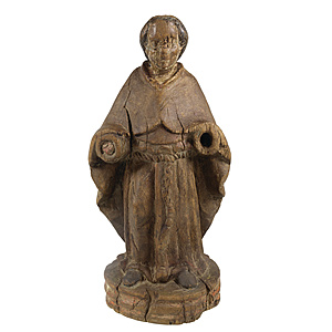 wooden figure, monk, 18th century, South German, wood, rests of the coloration, height = c. 33.0 cm