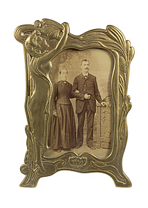 Rahmen, JUGENDSTIL um 1900, Messing, rückseitig mit Aufsteller, ca. 14,5 x 21,3 cm