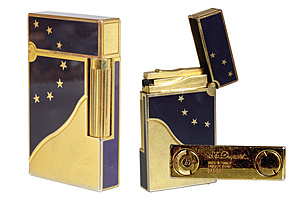 gasoline lighter, S.T.DUPONT, 1990s, Laque de Chine, N° OAO11, decorated with stars, c. 37.0 x 63.0 x 11.0 mm, unchecked!