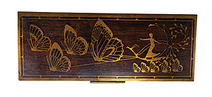 Schatulle SCHMETTERLINGE, JUGENDSTIL um 1900, Holz mit Messing beschlagen, 4 Messingfüße, abschließbar, ca. 22,8 x 12,5 x 6,0 cm