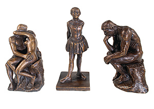 lot: 3 contemporary bronzes: 1 x The Thinker by Rodin, 1 x dancer by Edgar Degas, 1 x atlas by August Rodin, height = 11.5 - 14.5 cm