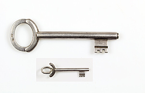 key pendant shaped like a key, silver 830/000, length = 80.5 mm, curious !