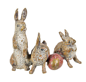 Vienna bronze around 1900/10, 3 hares with an egg, colored painted (worn), plastic worked, height = 2.8 cm