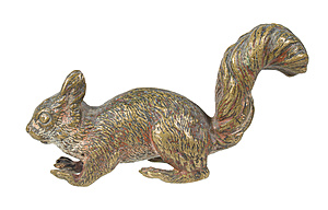 WIENER BRONCE um 1900/10, EICHHÖRNCHEN, Reste farbiger Bemalung, vollplastisch ausgearbeitet, L = 9,1 cm