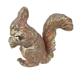 Vienna bronze around 1900/10, squirrel nibbling on an acorn, colored painted (worn), plastic worked, height = 8.0 cm