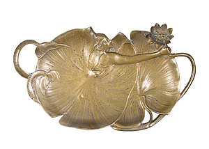 Anbietschale, WIENER-BRONZE um 1900, in Seerosenblätter u. Blüten eingebettete Meerjungfrau, 3kl. Knopffüße, schönes JUGENDSTILMOTIV, ca. 22,5 x 13,0 cm,