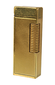gas lighter, DUNHILL, metal gold-colored, knurled surface, U.S.A.PAT.N°1657352, c. 23.5 x 12.5 x 64.0 mm