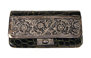 Leather purse, BIRMINGHAM 1900/01, SILVER 925/000, sig. E.L. & Co, front with ornamental fittings, roncallia meandering around stylized flowers, approx. 127.0 x 68.0 x 15.0 mm, good condition !