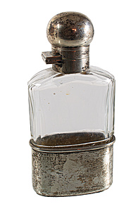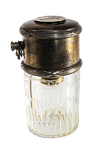 Hip flask circa1900, SILVER 800/000, German, signed: J. Demuth, cut glass, bayonet catch, h = 138.0 mm, total 285 g