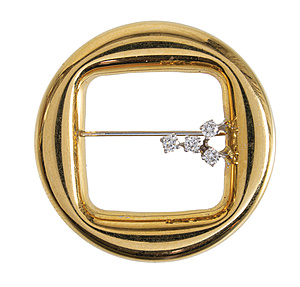 Brooch square in a circle, VINTAGE 1970/80s, GG 750/000, sig. Zerrener (omega symbol), 4 brilliant-cut diamonds approx. 0.18 ct tw-si (set in white), brooch d = 36.0 mm, total 13.0 g