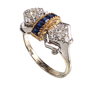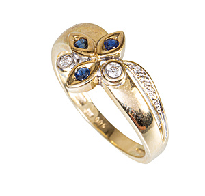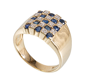 Ring, GG 585/000, Schauseite besetzt mit 12 Stck 8/8-kant Diamanten weiß, 13 Saphire ca. 3,5 ct (facettiert), RW ca. 61,5, total 7,5 g
