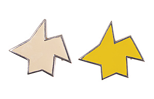 Lot: 2 brooches by IMI KNOEBEL, KINDERSTERN, SILVER 925/000, signed/dated IMI 92, yellow and cream-colored enamel, dimensions approx. 39.2 x 35.7 mm