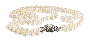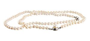 Lot: 1 pearl necklace with SILVER clasp, Akoja pearls D = 3.5-7.2 mm, L = 47.8 cm; 1 Akoja pearl necklace, clasp GG 585/000, pearls D = 6.5-7.0 mm, L = 42.5 cm