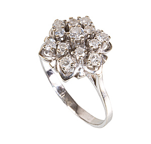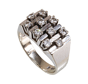 Ring, WG 585/000, 7 brilliant-cut diamonds approx. 0.35 ct w-si, 6 pcs. 8/8-cut diamonds white, RW approx. 53.5