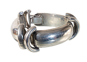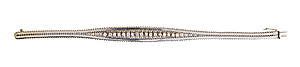 Armreif Teilmemoire, GG 585/000, signiert MARANCI 80 Brillanten ca. 0,7 ct w-vsi, in zwei Reihen parallel eingefasst, Kastenschloss mit Sicherheitsacht, B = 4,8 mm, innen ca. 62,2 x 53,0 mm, total 12,7 g