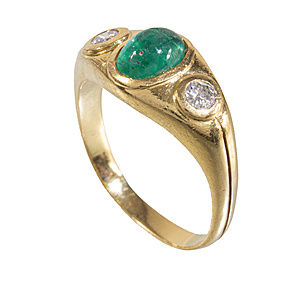 Ring, WG 750/000, sehr feiner Smaragd ca. 0,60 ct (facettiert), 2 Brillanten ca. 0,26 ct tw-vvsi/if, RW ca. 57,5, total 6,8 g