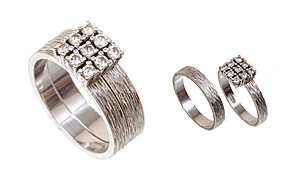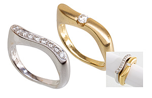 Lot: 2 Ringe signiert ACACIA, GG/WG 750/000, 1 Ring, 1 Brillant ca. 0,11 ct tw-vsi (Rondiste bestoßen); 1 Ring, 9 Brillanten ca. 0,225 ct tw-vsi, beide RW ca. 54,5, total 15,4 g