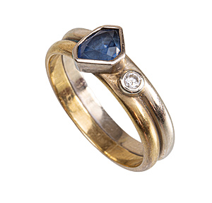 Ring, GG 585/000, top set with 12 8/8-cut white diamonds, 13 sapphires approx. 3.5 ct (faceted), RW approx. 61.5, total 7.5 g