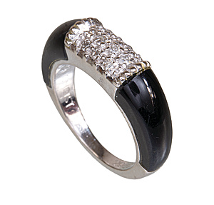 Ring, GG 585/000, signiert CHRIST, 10 Stck. 8/8-kant Diamanten 0,12 ct w-si, seitlich 2 eingeschliffene Onyxe, RW ca. 48
