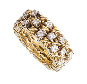 Ring, GG 585/000, front with 18 brilliant-cut diamonds approx. 0.33 ct w/si, RW approx. 58.5, total 5.5 g