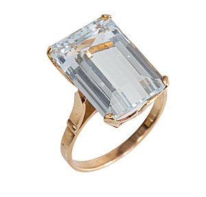 Ring, GG 750/000, very fine light blue aquamarine approx. 14.39 ct (emerald cut), 18.3 x 12.3 mm, RW approx. 63, total 6.9 g