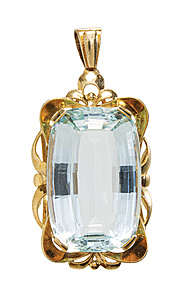 Pendant1. Half 20th century, GG 585/000, decorative aquamarine approx. 30.0 ct (antique cut), 24.7 x 16.0 mm, H = 42.2 mm, total 6.9 g