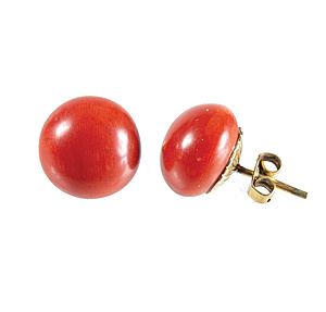 1 pair of coral stud earrings, GG 585/000, coral boutons D = 11.5-12.0 mm, total 4.4 g