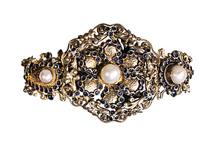 Armband, SIEBENBÜRGEN um 1870, SILBER vergoldet, Unterseite mit gravierter Ornamentik, Perlen 5,0-8,0 mm, , B = 42,5 mm