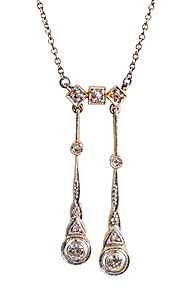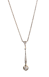 Necklace, ART-DECO 1920/30s, GG 585/000, 5 diamonds approx. 0.14 ct white, 6 diamond roses white, all stones set in platinum, suspended bars L = 31.5 mm, L = 50.0 cm