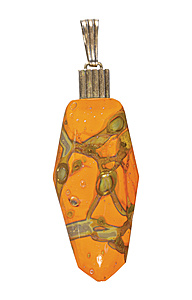 Necklace, ART-DECO 1930s, BENGEL Idar-Oberstein, white metal, geometric bodies, galalith in brown tones, front h = 42.0 mm, bar chain, l = approx. 44.0 cm