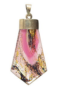 Anhänger, JUGENDSTIL um 1900, GG 585/000 (geprüft), grüner Cabochon, 4 rote Steine im Carré-Schliff (Rubine ?), abgehängte Flügelperle, H = 53,0 mm, total 3,5 g