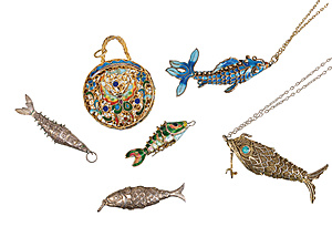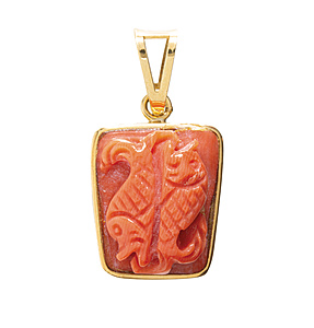 Anhänger FISCHE, GG 750/000, geschnittene/gravierte Koralle plastisch ausgearbeitet, H = 30,5 mm, total 5,5 g