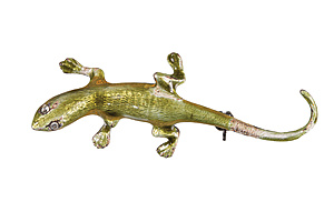 SALAMANDER brooch, ART-DECO 1930s/40s, SILVER 925/000, surface green enameled (small flaws), faceted colorless stone eyes, l = 51.1 mm