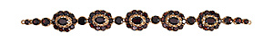 Part of a bracelet, GG 333/000 (tested), 5 oval rosettes, 64 faceted garnets, L = 14.5 cm, total 17.0 g. With a new piece of chain and a spring ring the bracelet is perfect again !!!