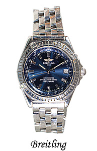 Herren-Armbanduhr, BREITLING Windrider (Chronometer), Stahl, Automatik, blaues Ziffernblatt, zent. Sek., Dat. auf 3 Uhr, Strichindex, Saphirglas, Stellring, D = 38,0 mm, verschr. Boden, Ref: A 10350, Stahlarmband mit Faltschließe, Papiere u. Originalbox, Uhr läuft !