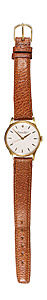 Men's wristwatch, IWC, manual winding, GG 750/000, signed, International Watch C° SCHAFFHAUSEN, cent. Sec., dash index, diameter = 32.4 mm, printed back, signed movement, leather strap with pin buckle, watch runs !