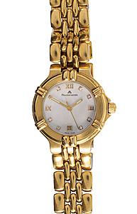 Ladies' wristwatch, MAURICE LACROIX Calypso, quartz, gold-plated steel, mother-of-pearl dial, cent. sec., date at 6 o'clock, roman and diamond index, printed back, d = 26.0 mm, Ref. N° 10715, folding clasp
