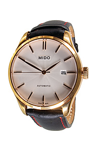 Men's wristwatch, MIDO Belluna, steel/rose gold-colored, automatic, white dial (guilloché), central sec., date at 3 o'clock, sapphire crystal, screwed transparent back, d = 40.0 mm, original leather strap with double folding clasp, original box, watch is running !