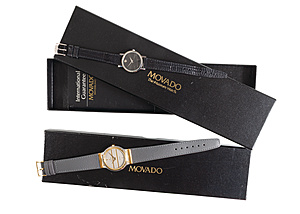 Lot: Wristwatches, MOVADO, steel, steel/gold, quartz, 1 MUSEUMS WATCH Klassik, d = 24.5 mm, 1 men's wristwatch (unworn), screw back, d = 32.0 mm, both with original straps and buckle, original box, untested !