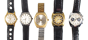 Lot: 5 VINTAGE Herren-Armbanduhren, Handaufzug/Automatik, 1 KONNEXA, 1 BWC (Quarz),1 BOURBON, 1 ROAMER u. 1 BWC Chrono, die meisten Uhren laufen !!