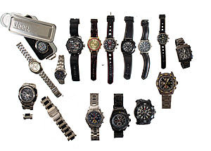 Lot: 1 JEEP Chrono; 1 x ECO SERIES; 3 x FILA Chrono; 2 x KÖNIGSWERK (rectangular and round), all with metal bracelet; 1 x OSCAR EMIL; 1 x KÖNIGSWERK (round); 2 x NAUTEC, Chrono with screw-down crown; 1 x ROEBELIN & GRAEF; 1 x SWISS MILITARY (without bracelet), some with guarantee card, untested !