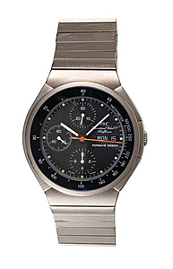 Herren-Armbanduhr, IWC International Watch & Co Schaffhausen PORSCHE DESIGN, Chrono Automatik, Titan, schwarzes Ziffernblatt, Tag, Datum, kl. Sek., Saphirglas, verschr. Boden, D = 42,2 mm, Kal. 7750, Faltschließe mit seitlichem Drücker, Uhr läuft,