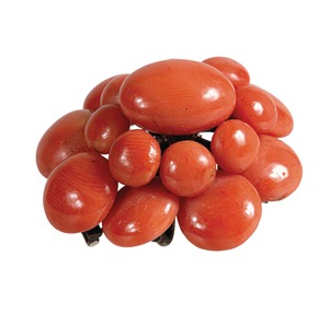 Brosche um 1870/80, SILBER, 17 Korallenboutons, mittlere Koralle ca. 13,5 x 10,1 mm, Brosche ca. 31,3 x 32,4 mm, total 12,9 g